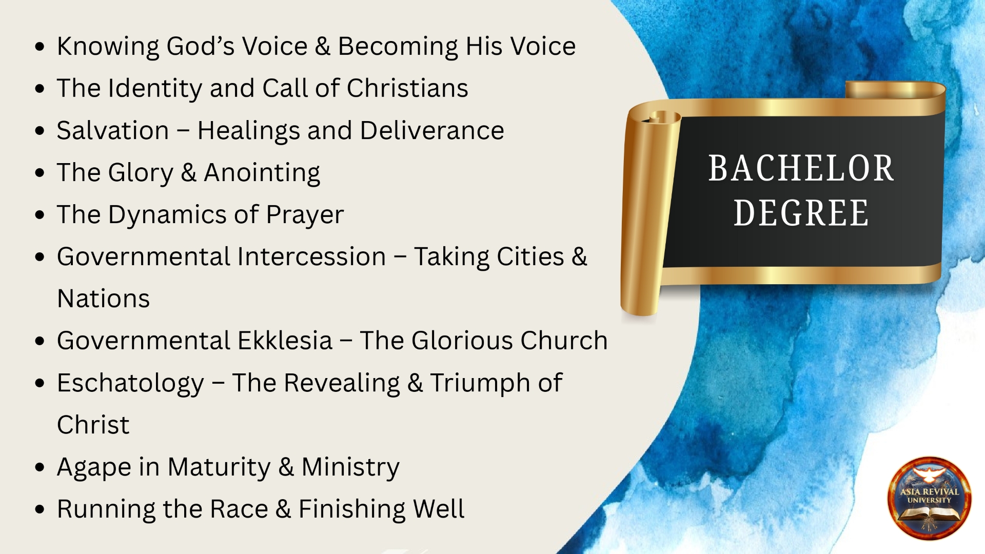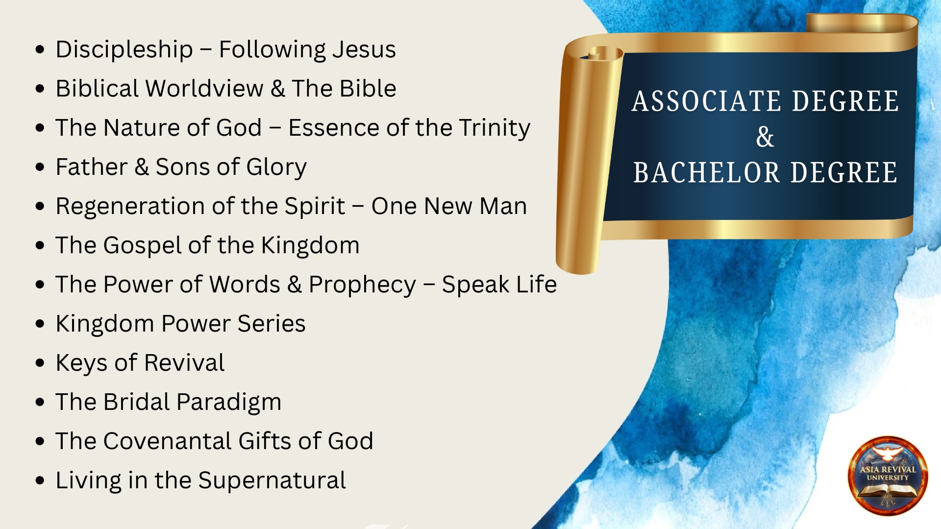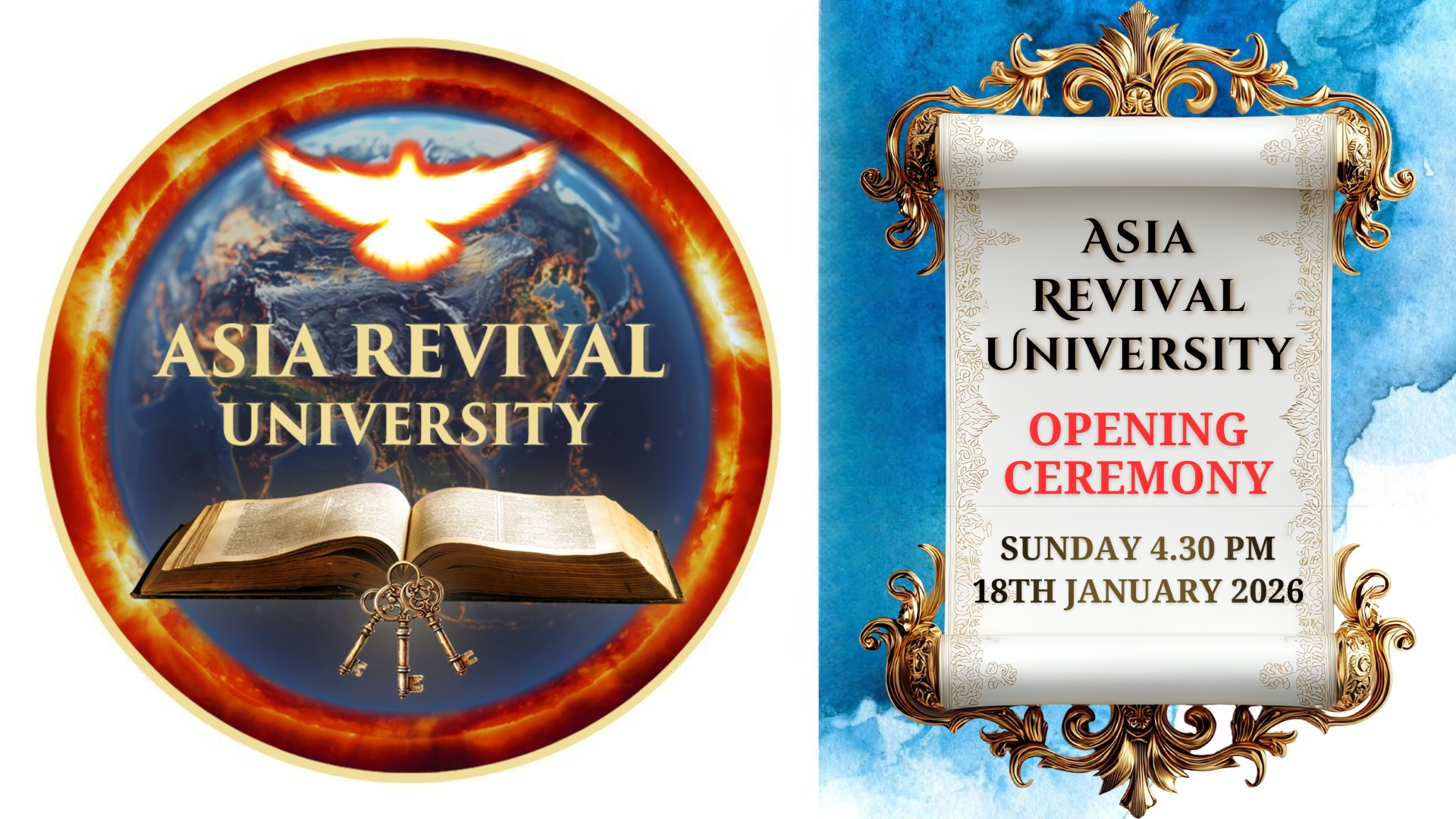 Come & join us for the Opening Ceremony of Asia Revival University during our Glory Gathering Sunday Service on 18th January 2026 at 4.30pm! Everyone is welcome!