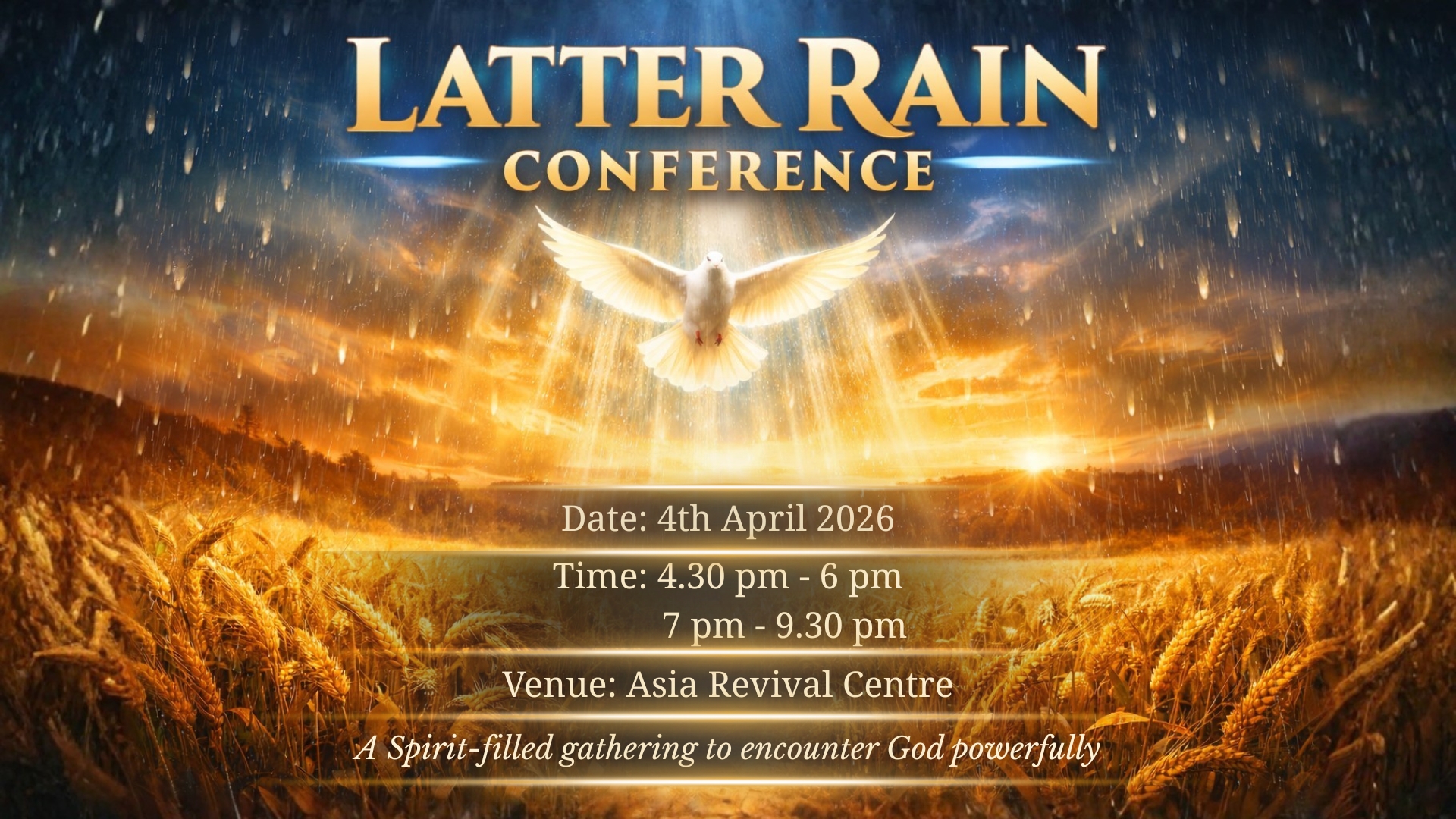 Come & join us in church or live online for Latter Rain Conference, a spirit-filled gathering to encounter God powerfully! Everyone is welcome!